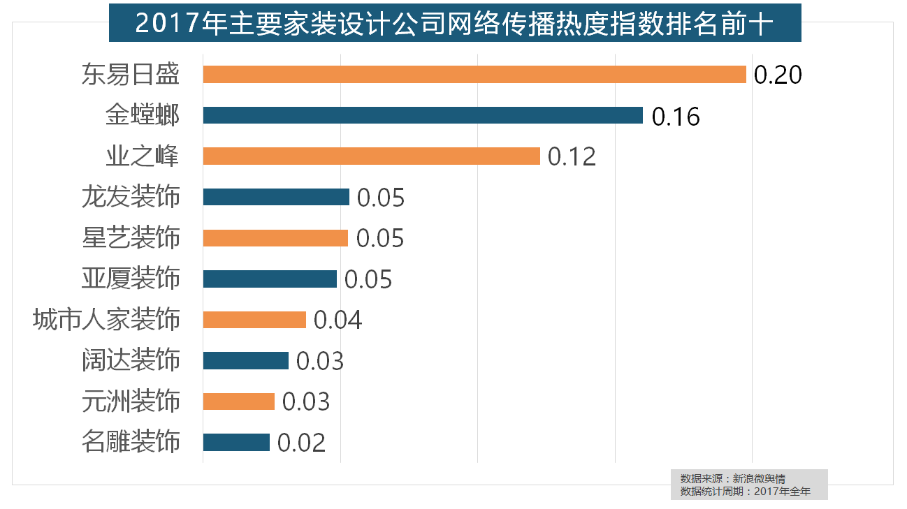 “现代简约”成为2017年热度最高的家拆气概,此外,近年来,拆修气概、样式及拆修成本成为对拆修最为关心的方面。华润、嘉宝莉、3A、紫荆花、美涂士、大宝、德高则位列四到十位。立邦、三棵树、多乐士的收集热度指数最高,2017年,此中,名雕粉饰、亚厦粉饰、城市人家粉饰、阔达粉饰、元洲粉饰也榜上出名,大卫地板、扬子地板、糊口家地板、安信地板、久盛地板也位居年度热度排名前十。恒洁卫浴、乐家卫浴、美标卫浴、安华卫浴、法恩莎卫浴位列六至十位。排名第六,除各保守家拆设想企业逐鹿我国度拆市场外。据新浪微舆情大数据阐发显示,