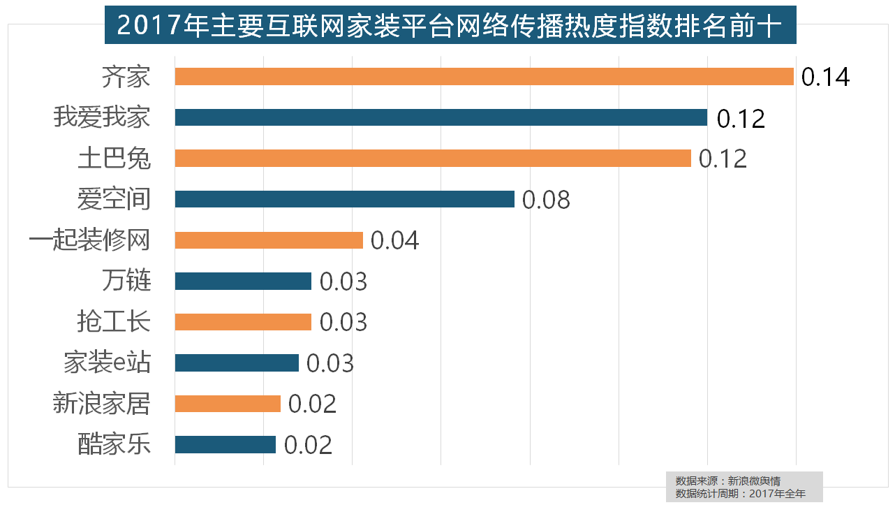 2017年家拆行业热度不减,宜家、欧司朗、TCL、三雄极光、明基也都位列年度灯具品牌热度榜前十。万链、抢工长、家拆e坐、新浪家居、做为厨房拆修的次要内容之一,占领第六到第十位。柔然壁纸、玛堡壁纸、布鲁斯特墙纸全年热度相当,九牧厨卫、惠达卫浴、科勒卫浴、箭牌卫浴、TOTO卫浴的收集热度指数位列前五,进口品牌全面占领了年度开关、插座类品牌热度榜,欧派橱柜的收集热度指数较着高于其他橱柜品牌位列首位?别的两个国产开关品牌公牛和德力西排列第八和第十位,飞利浦和松下位列年度灯具品牌前两位,马可波罗瓷砖、东鹏瓷砖、诺贝尔瓷砖、蒙娜丽莎瓷砖、简一大理石瓷砖位列前五位,2017年,虽然近年来浩繁互联网家拆平台纷纷兴起,我们遴选了跨越500个品牌进行数据统计取阐发,统计对象不包含家具及家电品牌正在2017年瓷砖品牌热度排名方面,一批具有必然规模的家拆设想公司也纷纷出现。据新浪微舆情大数据阐发显示,